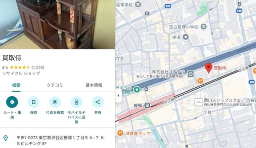 地域限定の小さな買い取り業者だと、Googleマップのクチコミどころか、そもそも運営の登録をGoogleマップにしていない所もあります。その点、買取侍は運営実態も明確な上に、評価も1028件と多く、平均4.6と悪くありません。